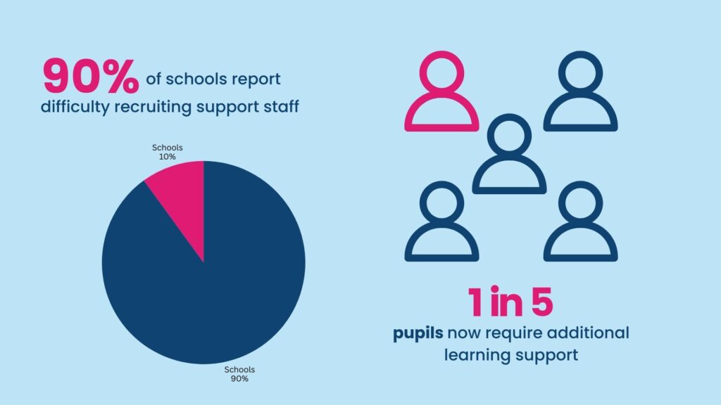 While these statistics highlight real challenges for schools, they also reflect growing opportunities for teaching assistants. As more pupils require additional support, schools are actively seeking committed, compassionate individuals who can make a genuine difference in the classroom.
